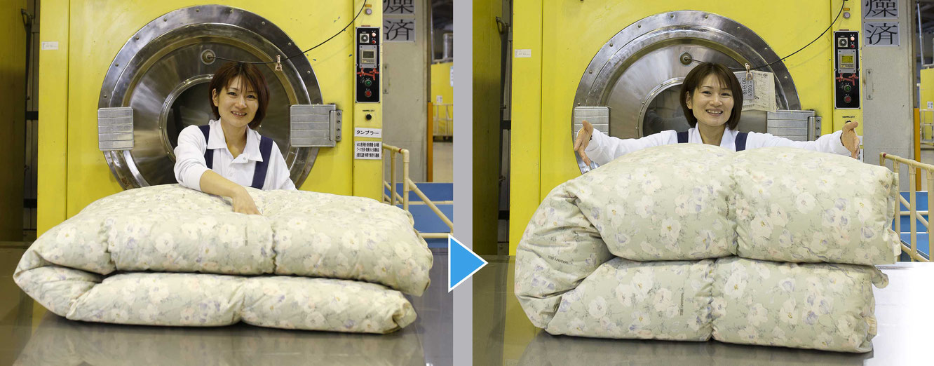 適切に水洗いクリーニング工程を完了したか、仕上がり具合に落ち度はないか、最終検査員の厳しいチェックに合格したふとんだけをお届けいたします。不合格品は再度洗浄工程に戻され万全の状態で出荷しています。