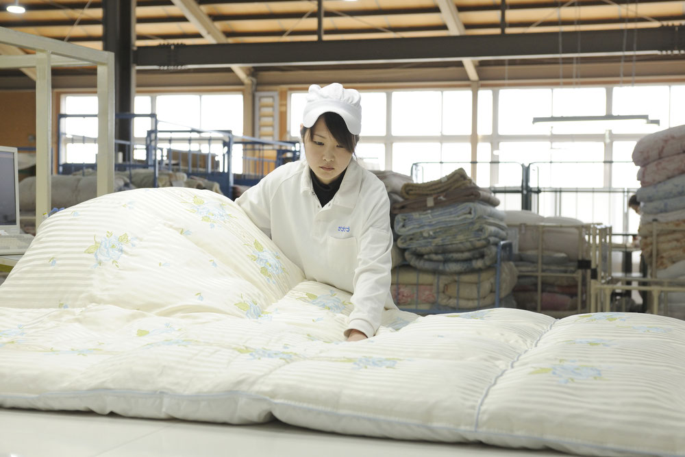 適切に全ての工程を完了したか、仕上がり具合に落ち度はないか、最終検査員の厳しいチェックに合格したふとんだけをお客様の元へお届けいたします。まだ落とせる汚れがあると判断されたふとんは、もう一度差し戻され、万全の状態でお客様にお届けします。