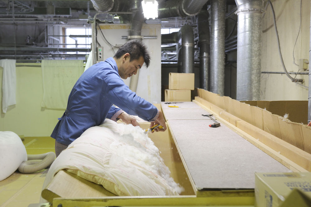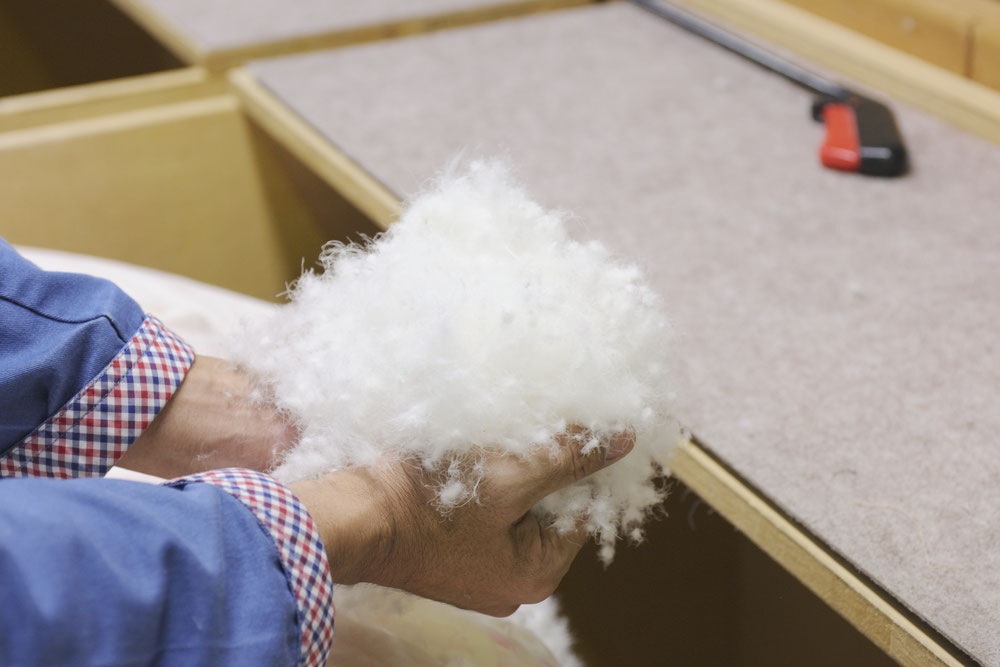 劣化した羽毛を除去し、高品質な羽毛をプラスします。除塵過程で目減りした羽毛の補充やお客様のご希望に応じた羽毛の補充を行います。