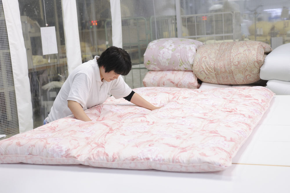 経験を積んだ品質検査員による細かなチェックを経てリフレッシュ工程が完了します。新品の羽毛ふとんと変わらない厳しい安全管理基準を適用しています。安心・安全は、お客様にお約束する最重要品質です。