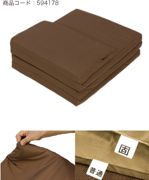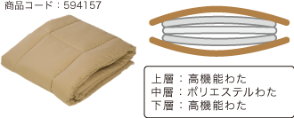| 「中わた3層構造」 3層構造により、空気を含みやすく、表裏どちらも使用が可能となっています。 |
